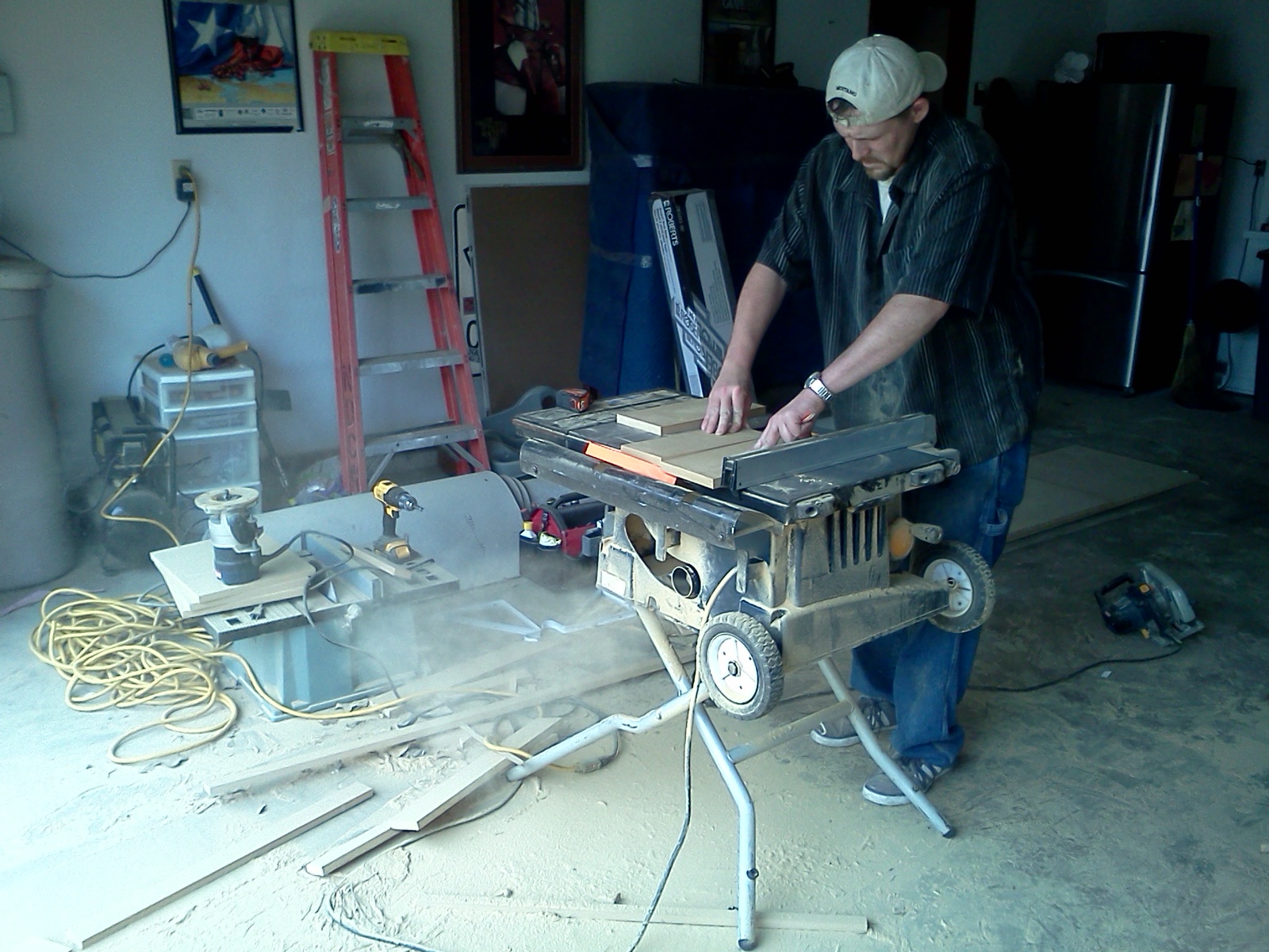 We used 3/4 inch MDF board only. We cut it down for bracing, trim, shelves…pretty much everything except the hanging rods was made out of MDF board