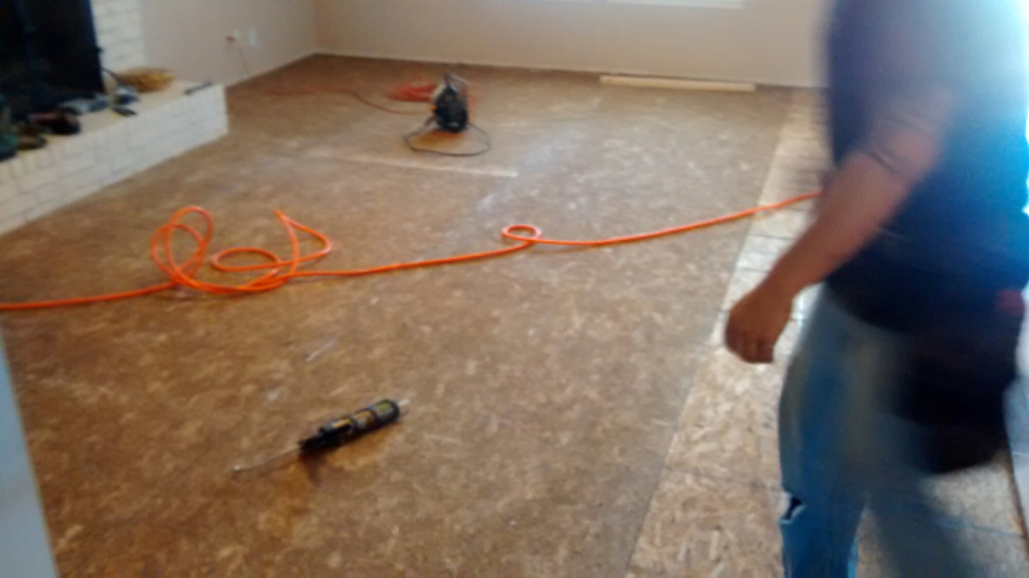 After framing the floor, we used decking adhesive and installed 3/4 inch decking.