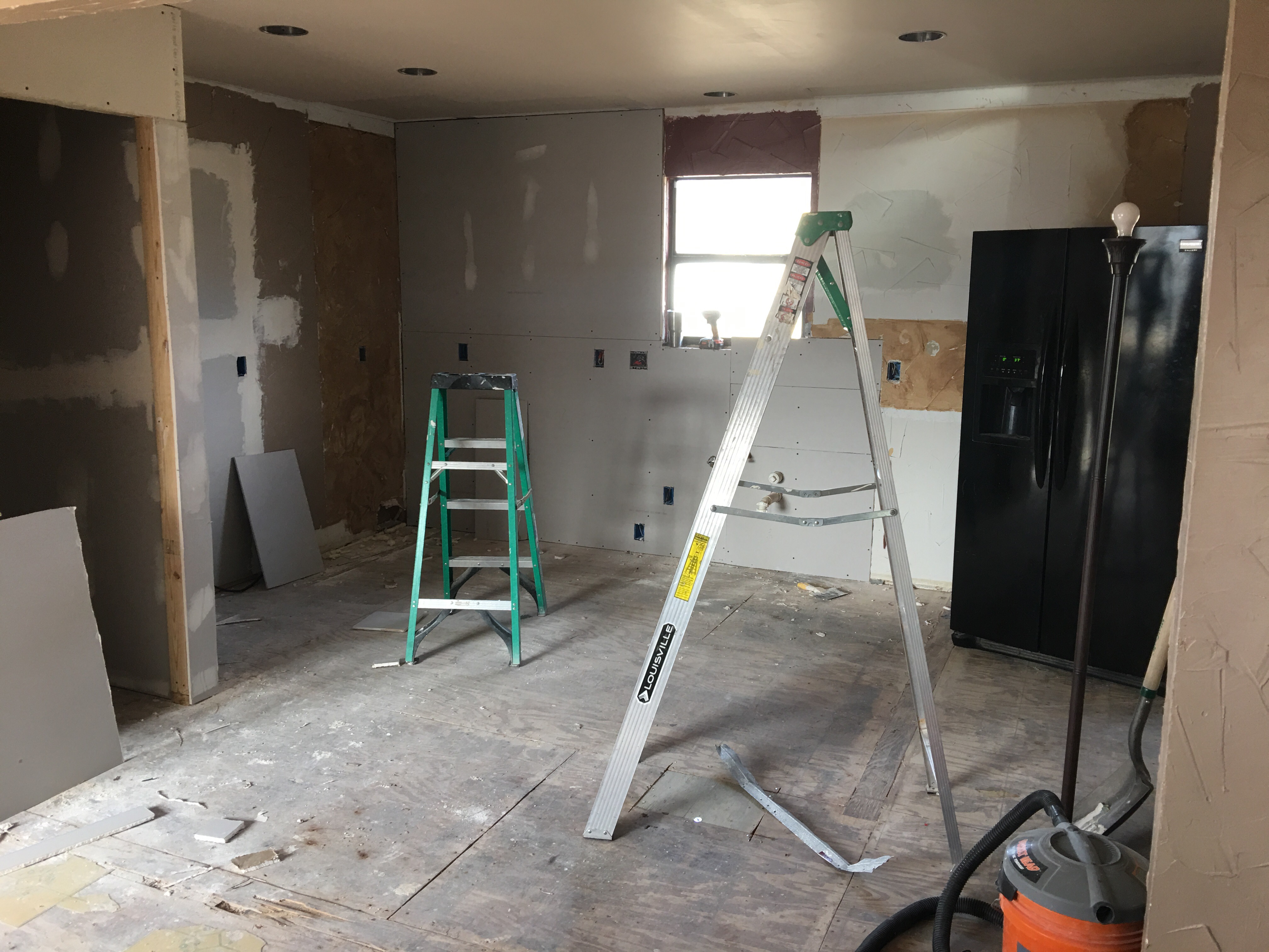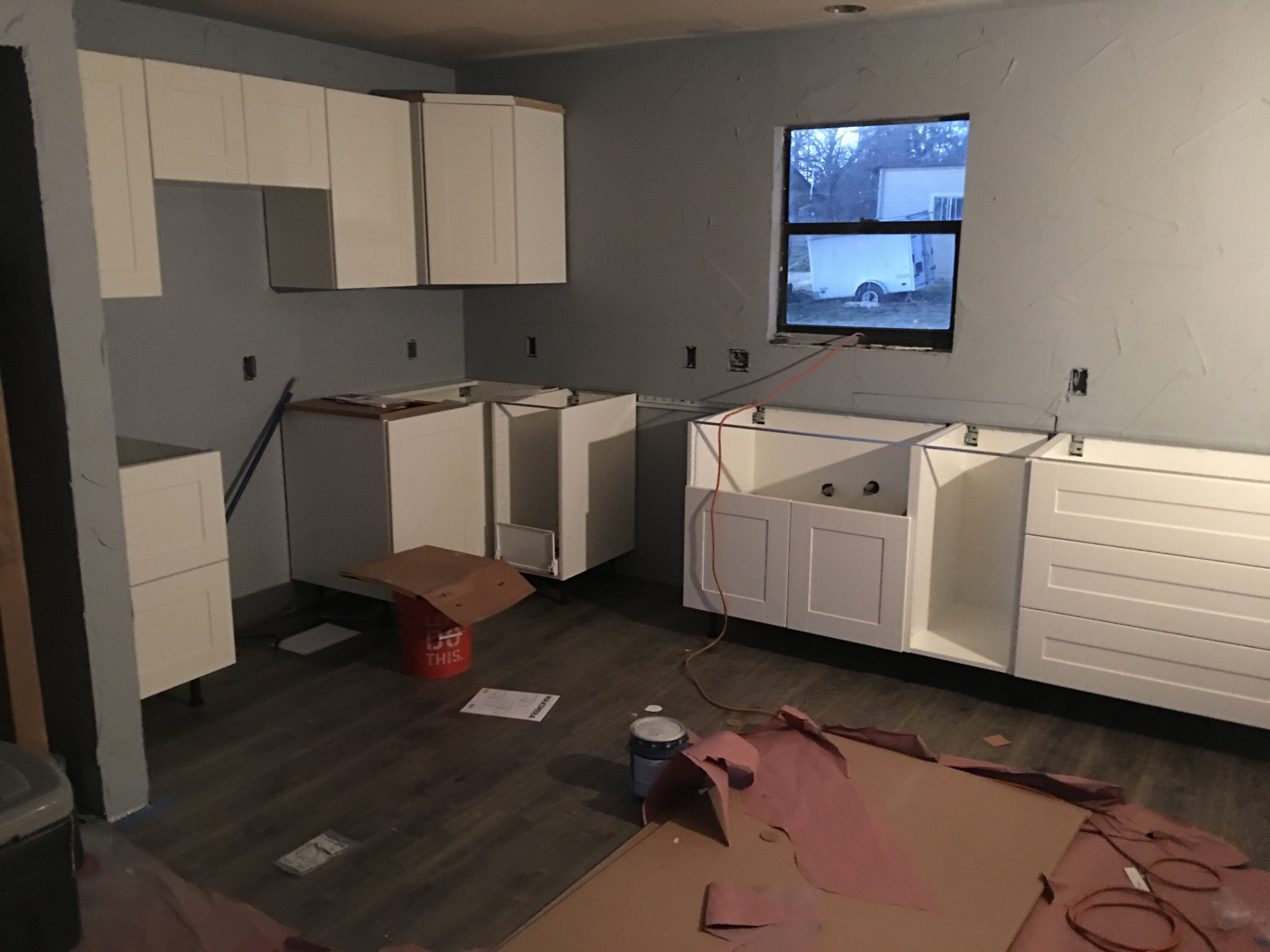 A kitchen, dining and laundry room remodel in Springtown. New cabinets, farmhouse sink, butcher block countertops, floor and subway tile backsplash. The plumbing and electrical had to be reconfigured to accommodate the new configuration. The customer is adding shelves above the sink at a later date.