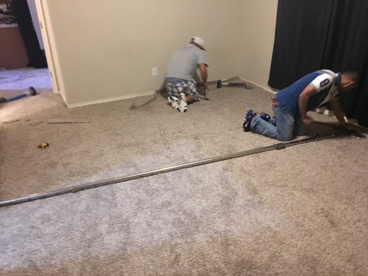 Today we are wrapping up repairs on a house in Roanoke, Tx that was flooded after a pipe froze and burst. Our friends, Santos and crew are installing the carpet today as we finish final touch ups. Running back over all the trim and covering the normal scuffs that come from carpet install.