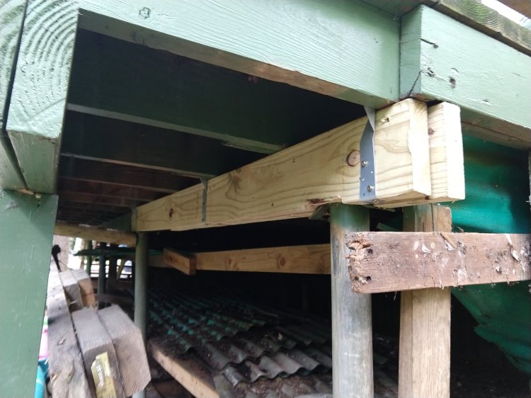 Today I raised a deck and removed rotted support beams. I then installed new treated 2×6 supports. We do a lot of these types of repairs. It’s always a great idea to keep an eye on the condition of decks, especially underneath where rot can spread unnoticed.