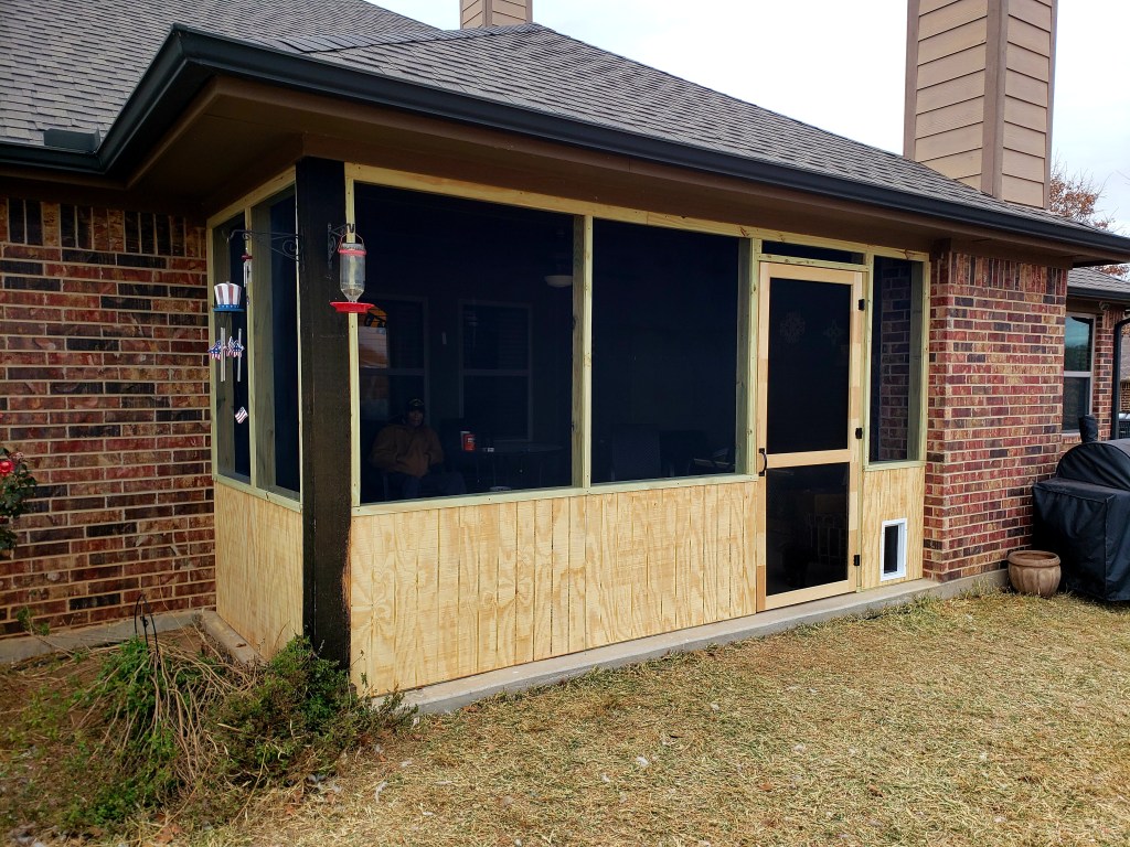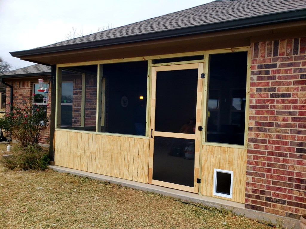 Tired of the pesky North Texas flies this year? Check out this screened in porch we built this week. It is wrapped with cedar!