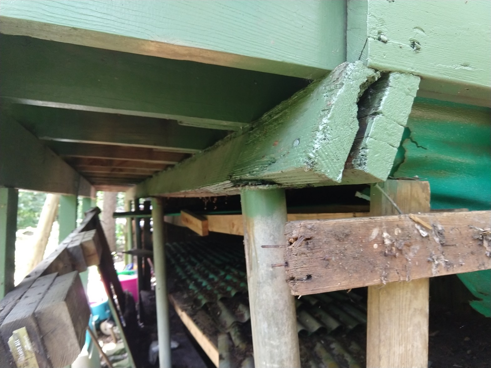 Today I raised a deck and removed rotted support beams. I then installed new treated 2×6 supports. We do a lot of these types of repairs. It’s always a great idea to keep an eye on the condition of decks, especially underneath where rot can spread unnoticed.