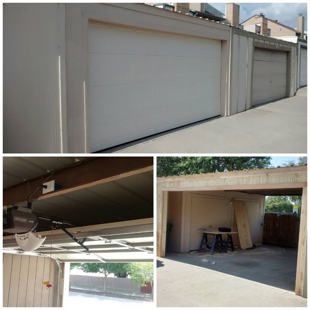 A customer in Grapevine had an open carport that we framed in to install a garage door. The opening had to be about a foot narrower to accommodate the new door. After trim and painting, it turned out pretty good!